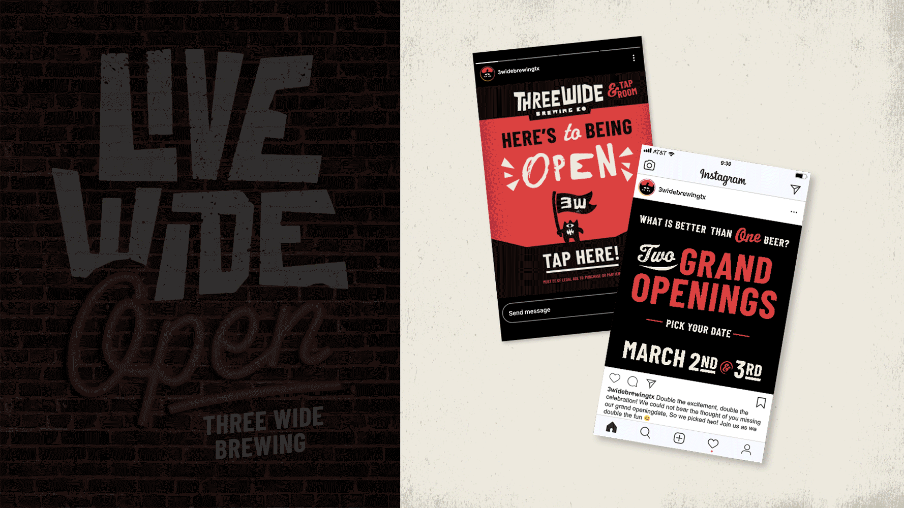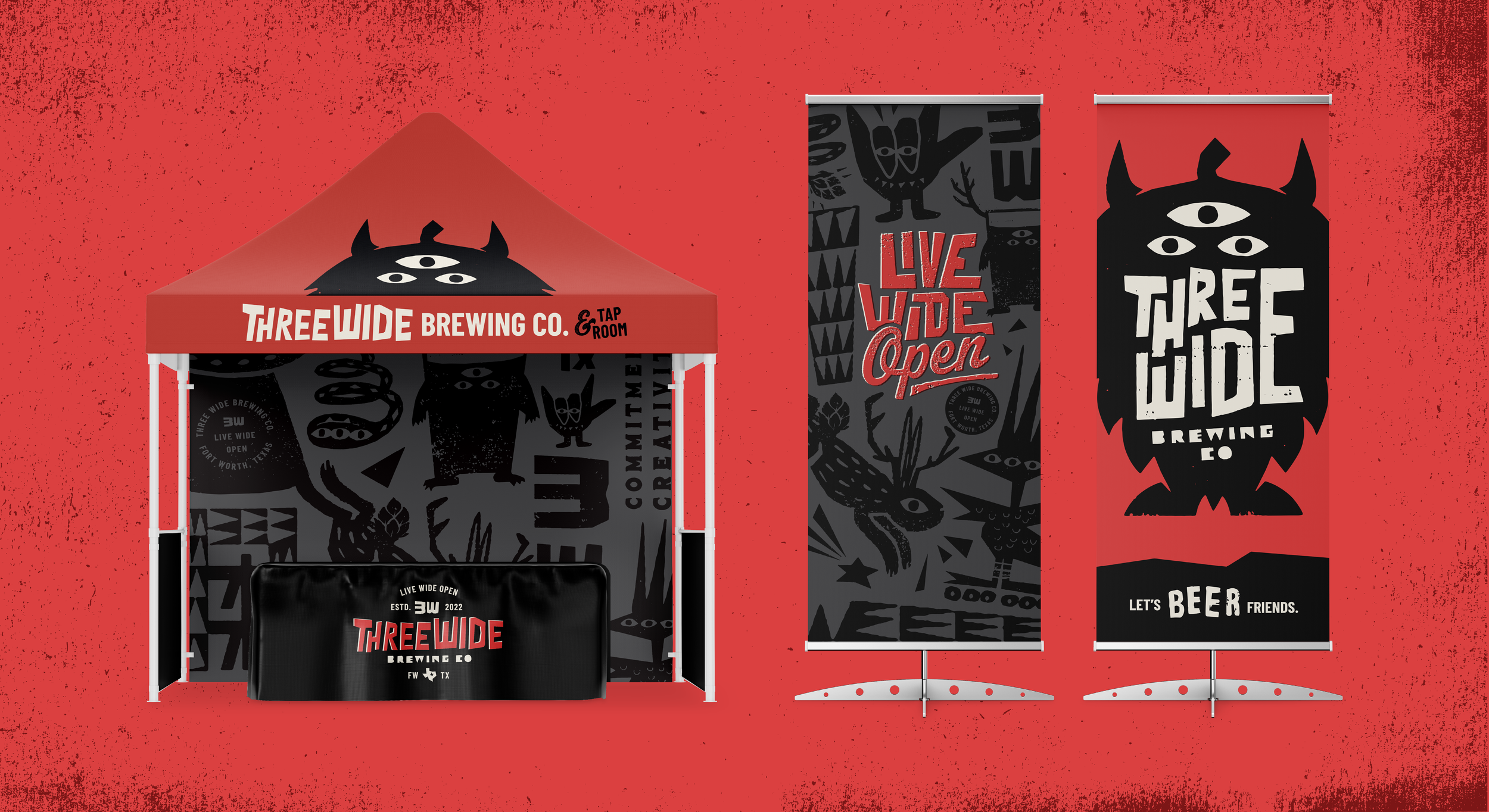 Tasked with launching Three Wide Brewing’s digital presence, I servied as the lead for their multi-channel digital and out-of-home campaign. The project spanned from targeted social media and digital ads to large-scale billboards—one of which earned a feature in the Print Awards for Hand Lettering. Following a successful opening, I extended the brand into the physical space, designing environmental assets like event tents and banners, as well as custom-patterned apparel. The campaign’s impact was recognized with a DSVC Bronze Award for Digital Advertising, marking a high-performance debut for the brewery.